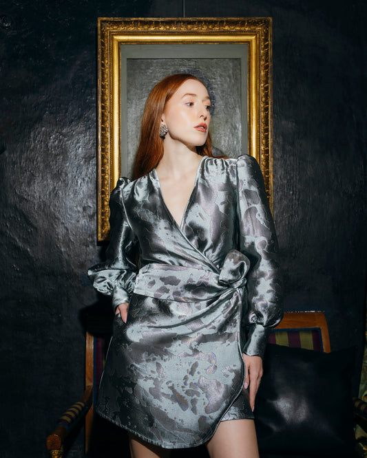 Madeleine Dress Silver jacquard