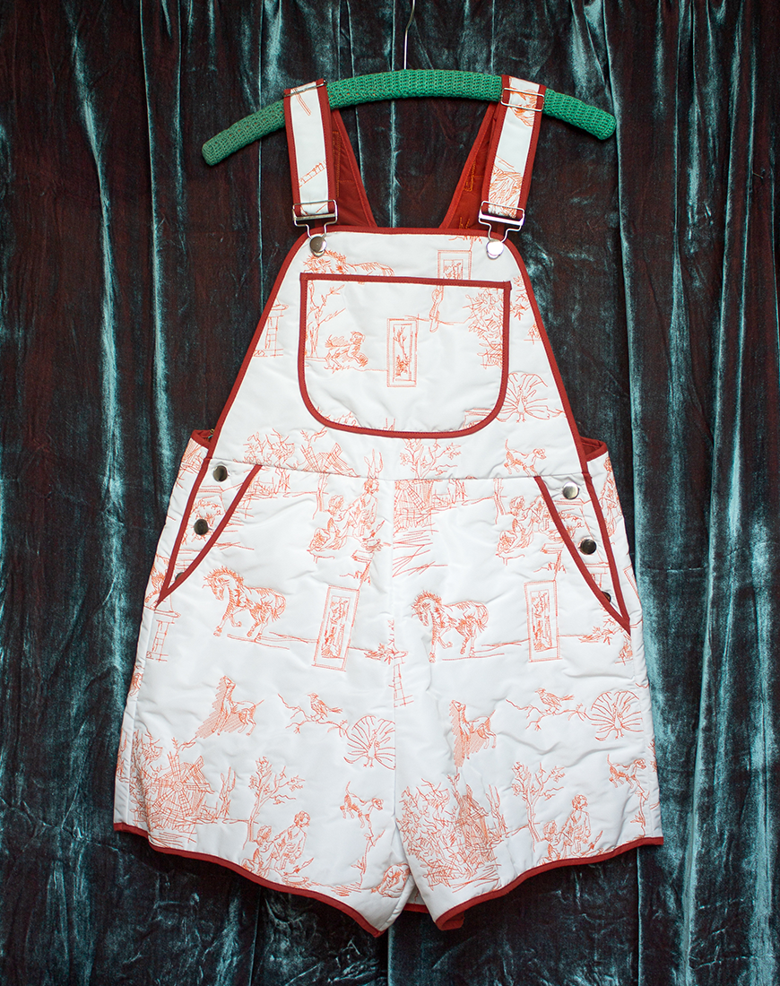 This jumpsuit is made in our unique toile de jouy matelassé with a front pocket situated by the chest as well as two side pockets. You can freely adjust the jumpsuit straps to your comfort.